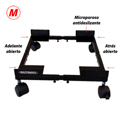 BASE MULTYUSO ABIERTO – NACIONAL, fabricado en acero, base con ancho y fondo ajustable a la medida de su artefacto, cuenta con ruedas con freno para bloquear y frenar, incluye kit de instalación. Lo encuentras solo en Multyracks. Somos fabricantes y especialistas, con más de 20 años en el mercado.