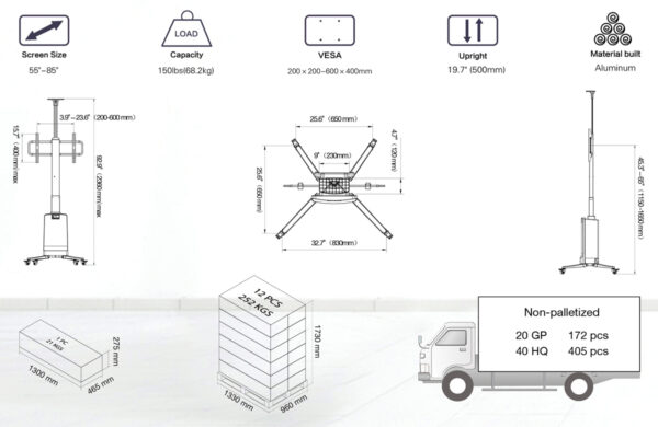 PEDESTAL A CONTROL REMOTO PARA PANTALLAS DE 50″ A 85″