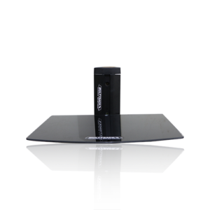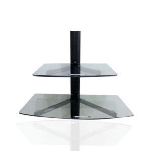 REPISA 45×30 CON TAPA CABLE, De un nivel, fabricado en acero, aluminio y vidrio gris de 6:00 mm, anclado a la pared.