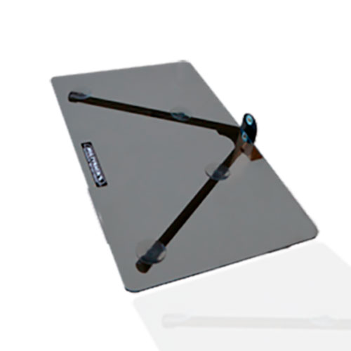 - Soporte de acero y vidrio.