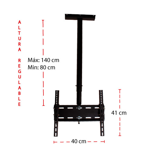 TV RACK EXTRA LARGO TECHO, un soporte fabricado en acero, compatible con televisores de 50″ a 65″ – VESA Máximo de 40 x 40 cm. Modelo full movimiento con giro horizontal 360º y una ligera inclinación de 30°. Este producto incluye un Kit de Instalación completo de alta calidad – Sistema Alemán, el cual le permitirá una instalación fácil y segura. Opcionalmente, puede solicitar nuestro servicio especial de Instalaciones.